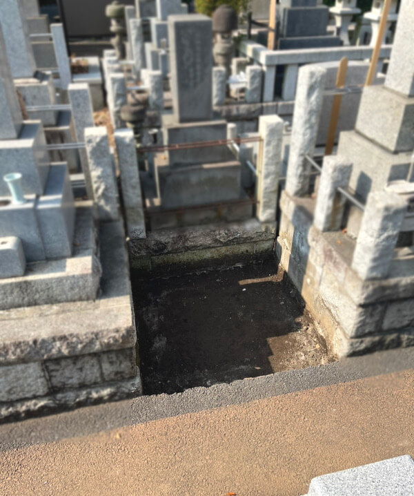こちらがお墓を建てる場所です。約4尺四方(約1.2m四方)の広さです。